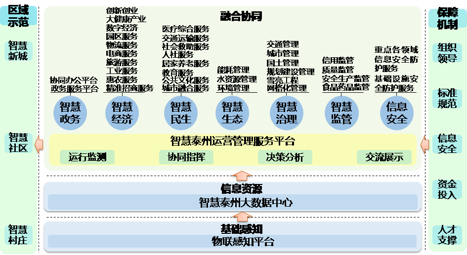4.智慧城市逐步向泛在、融合、协同方向演进。随处可得的网络接入、计算资源和应用服务,加速了物联感知体系的快速构建。软件和硬件融合,促进了服务模式的变革和创新。跨部门、跨领域的应用协同使得信息交互和辅助决策更加智能,高弹性、广适应、柔性化的信息系统应用成为发展趋势。我市需要紧跟智慧城市的发展方向,推动信息化与经济社会发展深度创新融合,将智慧泰州建设作为引领和带动新一轮城市发展的重要战略举措。